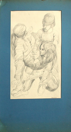 Pencil drawing, 12-1/2 x 21, in deteriorated 18 x 32 mat. Signed.