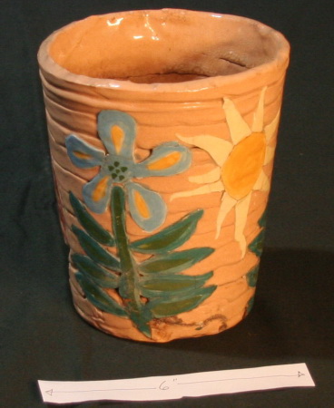 Pot, by Dorothy. Note chipped finish, bottom of green stem. See also accompanying panels.